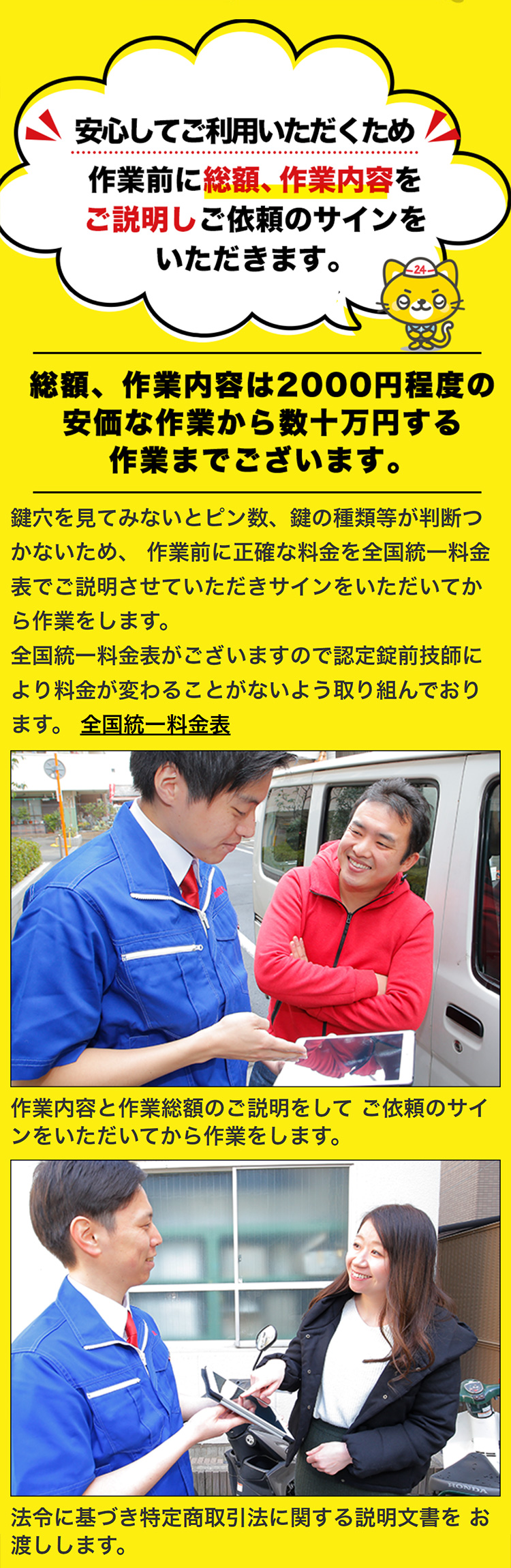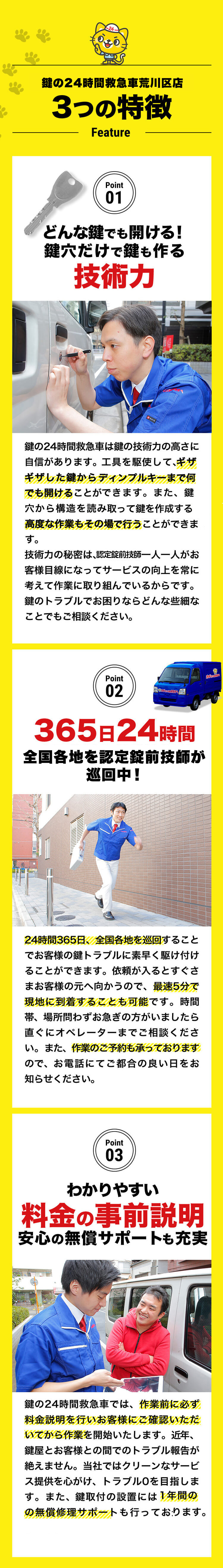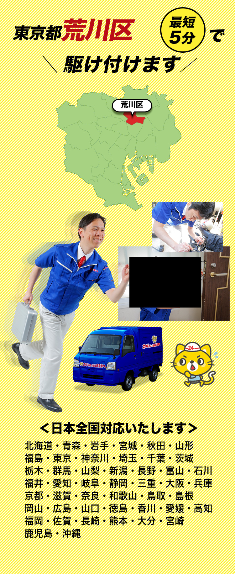 荒川区の「カギの出張24時間」は日暮里、町屋からのスピーディな対応をお約束。明確な事前説明と正確な見積もりで、お客様の信頼を第一に考えています。地域密着で親切丁寧なサービスを提供し、毎回の作業後にはお客様のフィードバックを活用しサービス品質の向上を図ります。